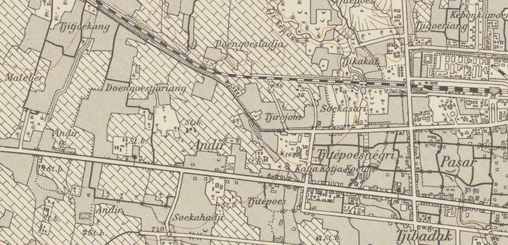 Kawasan Andir di peta Bandung tahun 1904. Koleksi Leiden University Libraries.